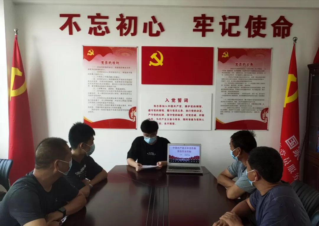 2021年暑期三下乡“学党史、跟党走,赓续红色血脉”社会实践小分队队员刘子旸来到国家电网河北省邢台市柏乡县西汪乡供电所,以《中国共产党百年党性教育的历史经验》为题,对供电所的党员们进行党史宣讲活动,并与党员进行深入交流。