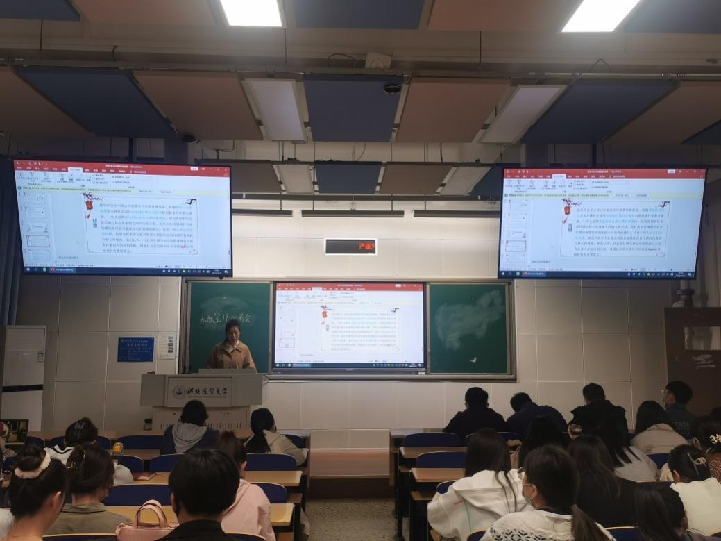“践行二十大,学‘习’讲故事”学习贯彻二十大精神系列活动第三期在北三教A104举行。系列活动第三期以“社会责任感”为主题,共有四位主讲人参与主讲,第一讲主讲人为2022级马克思主义理论专业研究生崔梦莹,主讲题目为《社会责任感与社会主义核心价值观的践行》。全院59名研究生参加了此次活动。