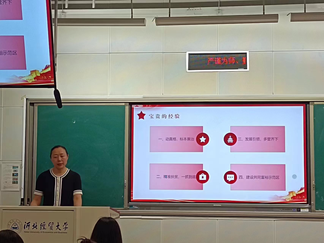 梁丽丽同学主讲的题目为《中国模式之迈向共同富裕的经验与启示》。该同学谈到,党的十八大以来,以习近平同志为核心的党中央把全面建成小康社会放在“四个全面”战略布局的首位,把脱贫攻坚作为全面建成小康社会的底线任务和标志性指标,吹响了决战决胜的冲锋号。2020年中国打赢脱贫攻坚战,在我国历史上首次消除了绝对贫困,并为世界各国消除贫困提供了宝贵经验。在实现中国式现代化的道路上,全国人民尤其是广大青年朋友要有志气、有骨气、有底气,书写好这份历史答卷,让梦想照进现实。