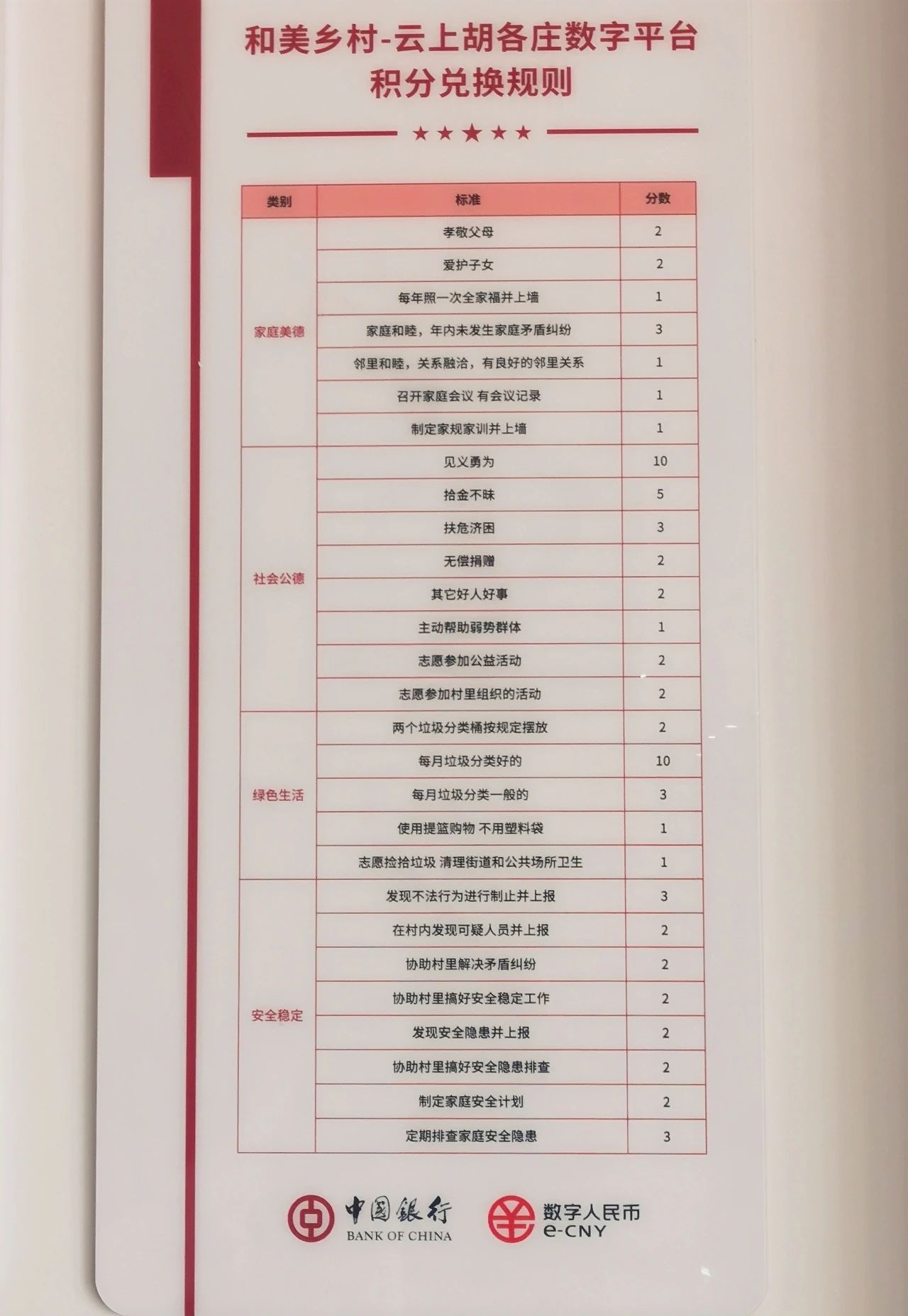 结合制度设计安排,传承优良村风。良好民风无疑是一座村庄崇德向善的最亮眼名片。胡各庄村在中国银行帮助下,通过电子信息登记方式,采用积分制管理办法,通过积分兑换超市购物的激励机制,鼓励群众做好人好事,形成了良好的村风村貌。同样,黄湾村、马蹄湾村不仅建成了养老服务中心、幼儿园等基础设施,也制定了《村规民约》,助力优良村风的形成。