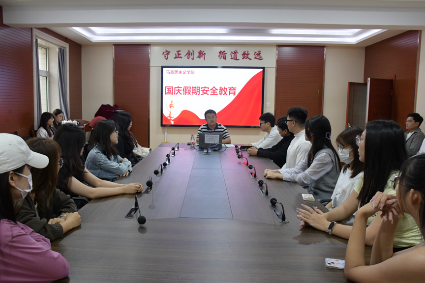 9月29日,学院从消防安全、交通安全、人身安全、财产安全和反诈防骗等方面,整理并下发了国庆节安全提示。9月30日,学院领导带队检查了学院办公室、教研室安全卫生情况,就今后加强和改进安全管理提出了具体要求。9月24日-29日,辅导员路艳丽、蒋志远、黄少雄老师组织开展了2022级、2023级、2024级研究生班级专项安全主题班会,针对交通安全、消防安全、反电信网络诈骗、依法文明上网等近期工作重点进行安排布置,积极引导学生牢固安全意识,增强安全观念。