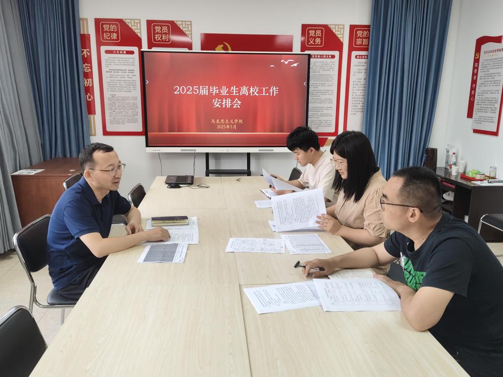 5月26日,学院在一办442会议室召开了2025届毕业生离校工作会,周献术老师、路艳丽老师、陈恒老师参加会议,学院党委副书记刘志峰主持会议。
