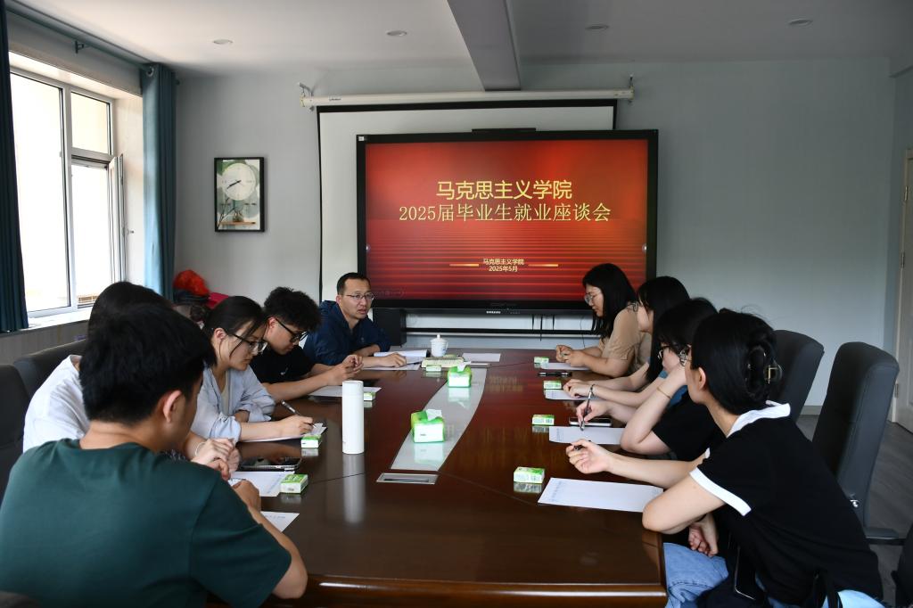 5月29日下午,学院在二办202召开了毕业生就业座谈会,学院党委副书记刘志峰、路艳丽老师参加会议,毕业生代表参加会议。