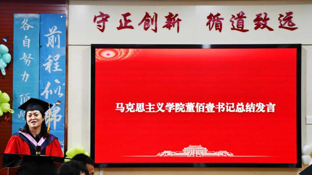 最后,董佰壹书记表示毕业生要心怀梦想,不忘初心,敢于挑战,以学为帆、以思为舵,为国家建设和社会发展作出积极贡献,在实现中国梦的伟大征程中书写属于自己的青春华章。