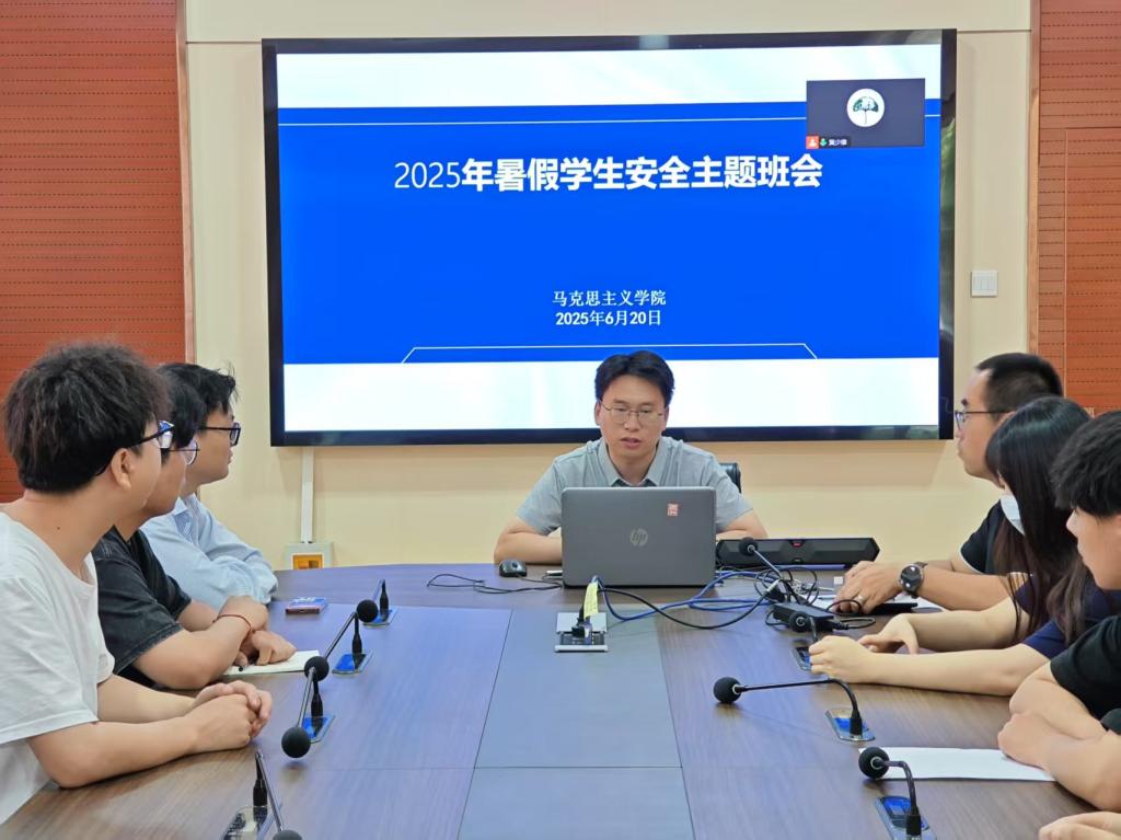 为了增强学生安全意识,抓好暑假学生安全工作,6月20日上午,学院采取现场+腾讯会议相结合的方式,召开了暑假学生安全主题班会,24级研究生班主任黄少雄老师主讲、科级辅导员周献术老师主持班会,全体研究生参加班会。