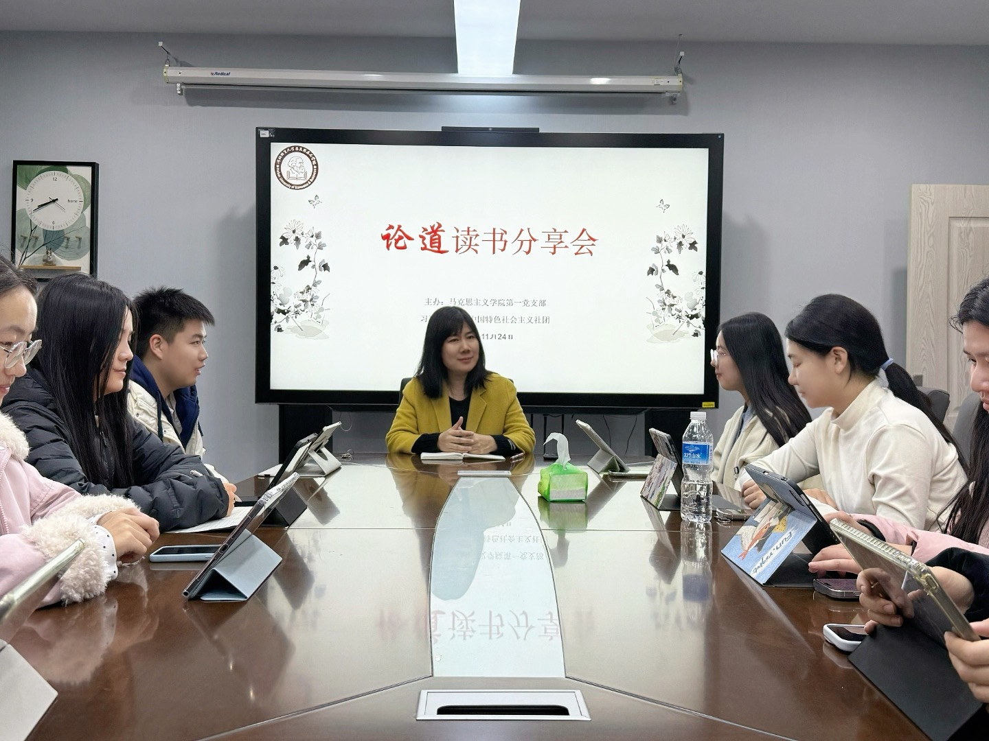 在二办202举办研究生“论道”第四期读书分享会,本次会议由习近平新时代中国特色社会主义思想社团、学院第一党支部主办,聚焦《知之深 爱之切》展开学习交流。萝莉