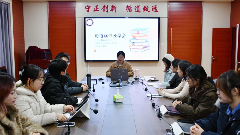 近日,学院在二办203举办研究生“论道”读书分享会(第六期),本次会议由模拟政协协会与学院第二党支部主办。学院硕士研究生导师路艳丽作为评议人,2024级、2025级马克思主义中国化方向全体研究生参与学习交流。