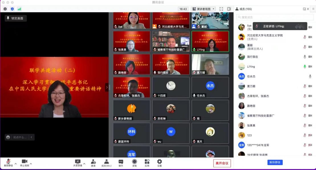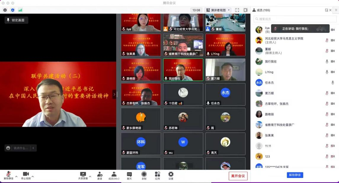 )、旅游学院党委、省教育厅科技处党支部和省教育厅机关党委人事处党支部共同举办的联学共建活动在线上线下同步举办。此次会议主题为“学习贯彻习近平总书记在中国人民大学考察时的重要讲话精神”,萝莉