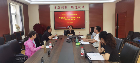 7月6日下午,学院党委书记董佰壹以“学思践悟,以‘一流党建’引领马院高质量发展”为题讲授主题教育专题党课。会议在二办203和线上同时进行,党委副书记马鑫、各党支部书记、学生党员和学生干部参会学习。