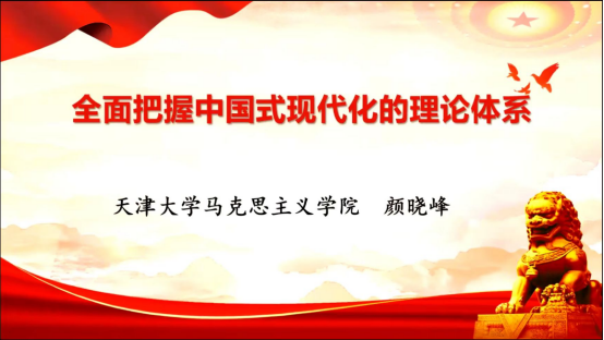 院长颜晓峰教授以全面把握中国式现代化的理论体系为题,重点探讨了中国式现代化蕴涵独特的世界观、价值观、历史观、文明观、民主观、生态观。