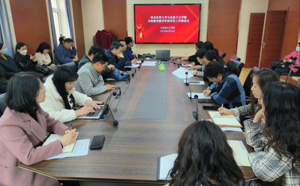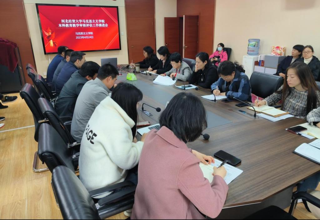 在二办203会议室召开本科教育教学审核评估工作推进会,会议传达了学校新一轮本科教育教学审核评估自评自建工作推进会会议精神,萝莉
