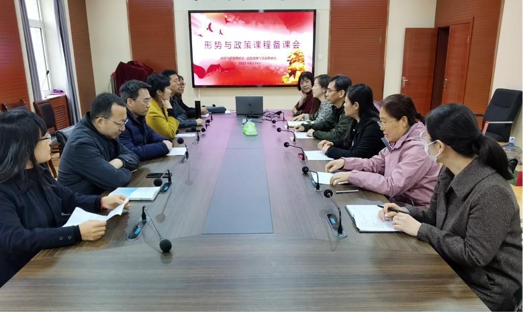 4月24日下午,为深入学习贯彻党的二十大精神,进一步提升形势与政策课的教学质量,形策教研室与德法教研室在新学期形策课开启前于二办203组织召开二十大精神融入形策课集体备课会,全体任课教师与会。
