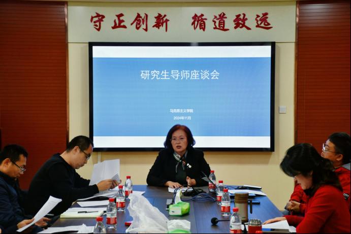 首先,李英院长强调了调整研究生培养方案的必要性,指出缩减课堂学习时间、增加实践教学是提升研究生培养质量的关键。她提出,课程设置应与学科方向一致,突出马克思主义学科特色,使培养方案更科学规范。其次,周献术老师传达了学校关于2025年培养方案修订座谈会的精神,总结了学院以往关于研究生培养方案修订所做的工作,并提出从实践研修、科研组会等六个方面加强科研实践环节的意见,建议在课程体系中融入学术前沿问题研究。与会导师们积极探讨课程设置、科研实践内容、考核方式和考核标准,围绕研究生培养方案调整提出一系列建设性意见。最后,路艳丽老师介绍了研究生三年级学生的就业情况。学院领导表示将高度重视和持续关注研究生就业问题,希望导师加强与学生的沟通交流,发挥导师在研究生就业指导中的关键作用,向学生及时提供就业信息,做好就业支持工作。