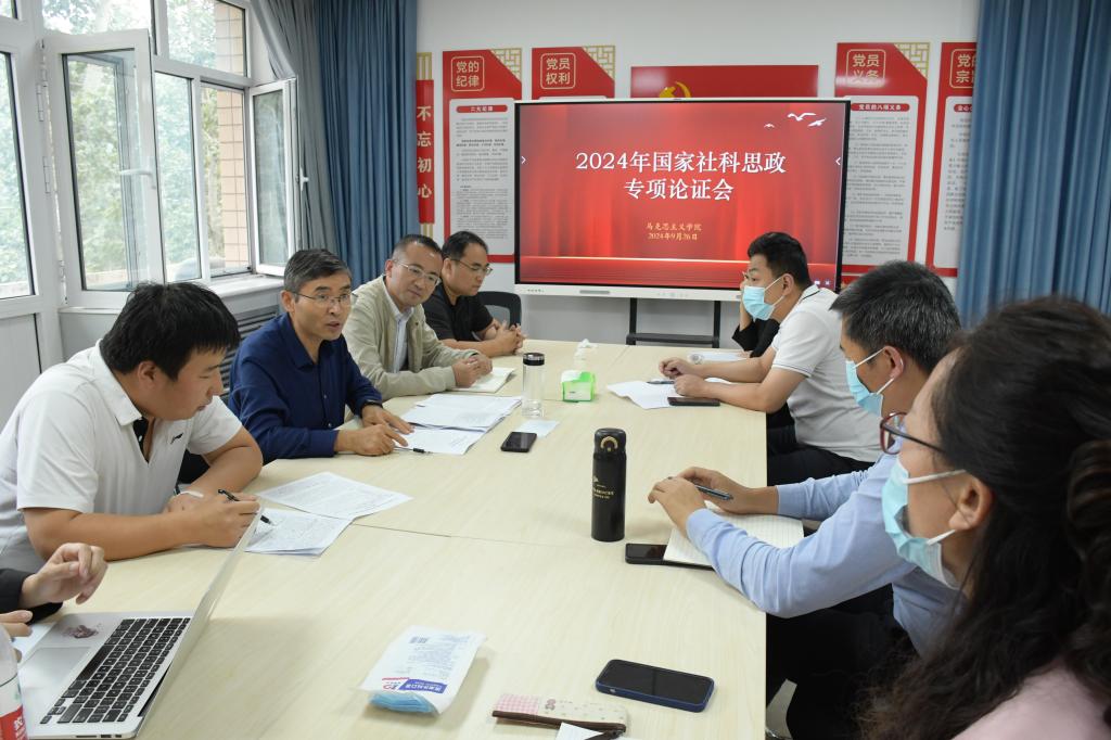 在一办442举行国家社科基金思政课专项项目论证会。本次活动邀请郭建教授担任指导专家,副院长马鑫主持,11位教师参会。