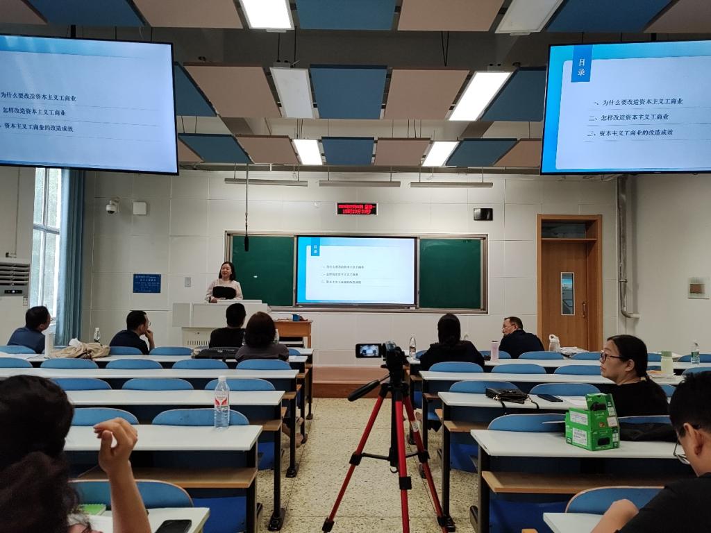 教学竞赛种子选手孙新会、兰美丽分别做了《社会主义三大改造》和《人民群众是历史的创造者》的主题教学展示,路艳丽、王永男根据上期专家意见对各自的教学汇报做出进一步修改和完善。四位教评指导老师从课件和教态的直观印象,到案例和问题的合理性设置,再到重难点把握、方法逻辑脉络、专业理论深度、知识框架延展等提出由浅入深、由表及里的全方位指导建议。