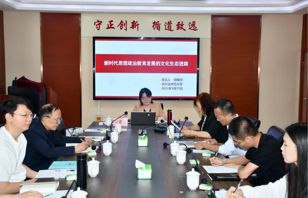 会上,胡菊华从文化与生态、历史与现实、理论与实践多重维度展开,以文化生态视角解析当代中国意识形态工作的战略逻辑,揭示思想政治教育创新发展的价值内核,并提炼出中国人精神世界建构的主体维度。其次,以习近平文化思想为理论基点,系统梳理新时代文化建设成就,深度解析当今文化建设面临的新变局与新使命,从推进中国式现代化、支撑民族复兴战略全局、提升国际文化话语权三个层面,阐释文化强国建设的时代意蕴。最后,聚焦建成教育强国战略目标,提出构建德智体美劳全面培养的教育新生态,主张建立大中小学思想政治教育纵向衔接机制,彰显其塑造时代新人的战略价值。